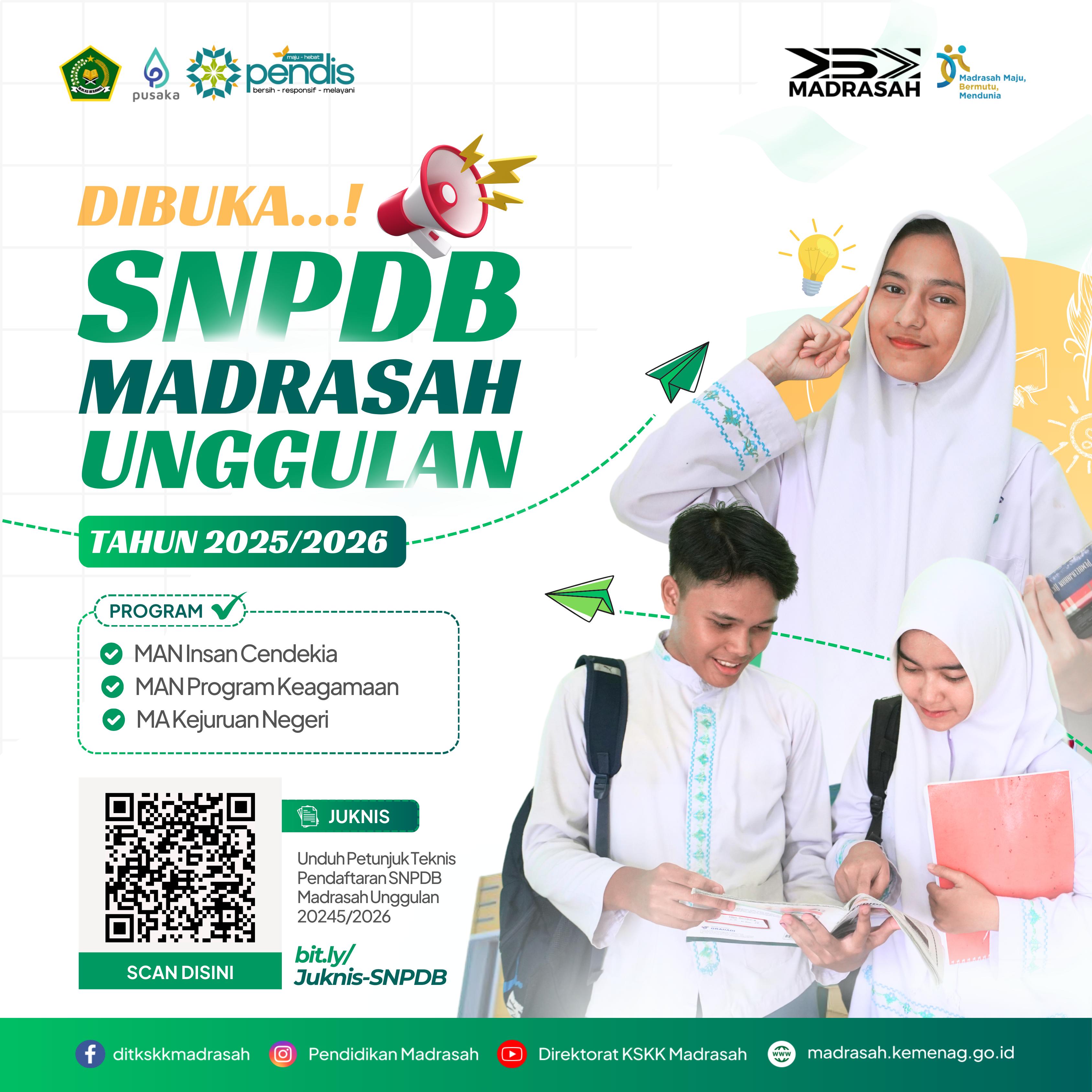 SNPDB Manggarai Timur MAN membuka kesempatan bagi putra-putri terbaik bangsa untuk menjadi bagian dari madrasah unggulan yang memadukan ilmu, iman, dan amal. Daftar sekarang dan wujudkan cita-citamu bersama kami!